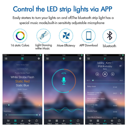 Wireless Bluetooth controller. WiFi APP controlled Led light strips can be controlled by a smartphone. No settings or network management required. App available for ios and android ,download by scanning QR code, offer an intelligent lifestyle.