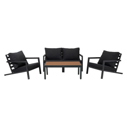 This sofa set is flexible to assemble so you can match the combination you want. It also includes a slatted top coffee table made of matching aluminum, which not only provides functionality but complements the modern appeal of the set.