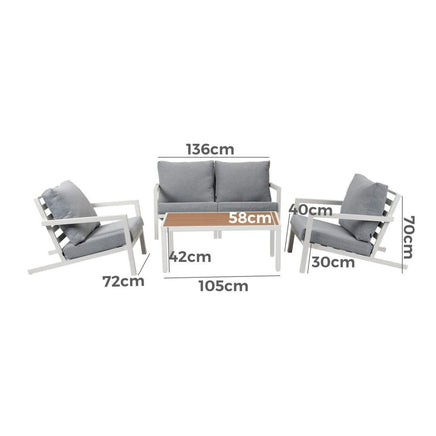 Introducing the "Contemporary 5-Piece Outdoor Sofa Set", a luxurious and functional addition to any outdoor space. Made with a powder-coated aluminium frame and topped with 10cm thick cushions, the sofa set is strong and durable-perfect for withstanding outdoor weather. Minimalist and stylish design allows this sofa set to blend seamlessly with a variety of outdoor environments.