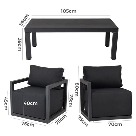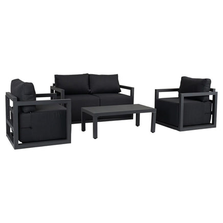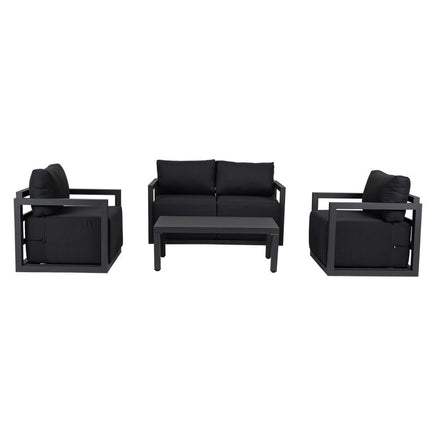 Accommodate for four people and is equipped with a rectangular shaped coffee table for you to place some drinks, snacks, or decorations. Made of powder-coated aluminum in the colors white or charcoal grey are easy to clean. Relax into the generous 40cm thicker cushions and enjoy entertaining in your garden.