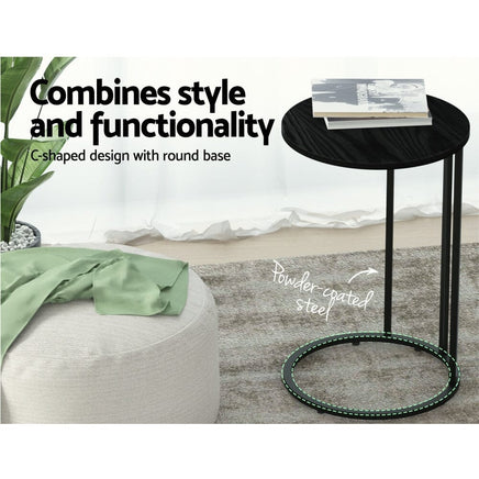 Elevate your living room with this modern and functional coffee table. With its clean lines and smooth edges, our Emma side table will complete the minimalist look and give your space an industrial-style inspired feel. The side table features thick tabletop particle board construction and solid metal frame, which ensures longlasting use and ultimate durability. It'll withstand the rigours of everyday use. Equipped with floor protectors, our side table prevents your floors from getting scratches. It has a c-shape design with round base that guarantees optimum stability. This side table has good weight holding capacity and offers good resistance against corrosion. It's also easy to clean. Furthermore, the side table is sleek and elegant, which also helps save space without compromising on its practicality, style, and usefulness. A piece so practically and thoughtfully designed, the Artiss Emma makes a must-have piece of furniture in every home. Shop it today.