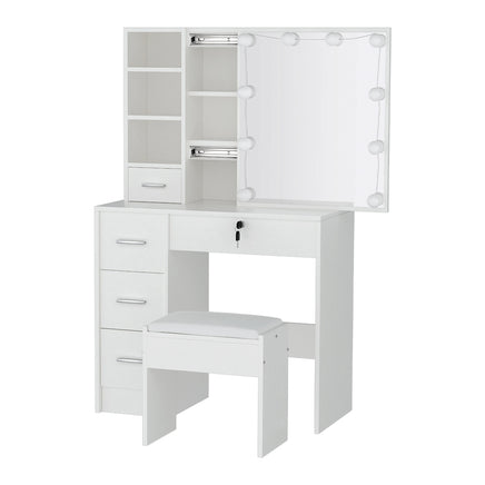 Feel like a star straight out of Hollywood with the Artiss Dylan Dressing Table. Packed with generous storage and other convenient features, your new beauty routine will be a breeze. Made from quality MDF particleboard with a melamine finish, the table is built to last. The Hollywood-style makeup mirror is surrounded by bright LED bulbs for the perfect illumination. Choose from warm, neutral and daylight white light so you can always look stage-ready. The vanity features three open shelves that you can use to display trinkets or beauty products. Five generous storage drawers with silver handles open smoothly on anti-rust runners, giving you instant access to your beauty essentials. A foam-padded PU leather stool allows you to sit comfortably while applying make-up or skincare and can be neatly tucked away when not in use. Easy to install and even easier to maintain, you'll love getting ready for the day in front of your new Artiss Dylan Dressing Table.