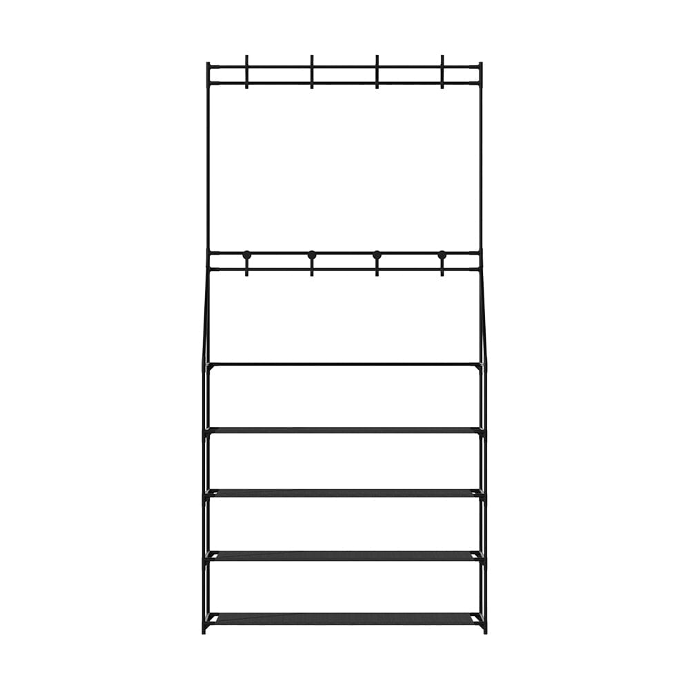 Sneakers, running shoes, flip-flops, boots, high heels, and special-occasion footwear, shoes are never enough! As our shoe collection gets out of hand, your first instinct may be to chuck them on the floor, gradually resulting in a shoe explosion. With our Artiss shoe rack, you can keep your beloved shoes organised and prevent them from getting scuffed or looking worn. It flaunts 3-in-1 design that allows you to hang your coats and jewellery, keep your footwear, and put your beloved purses for display on the non-woven fabric storage rack. Featuring meticulous craftsmanship, our shoe rack boasts a sturdy and durable structure with black powder-coated metal tubes and non-slip foot pads. It has an additional support rod for stability and comes with two sets of wall attachments. Additionally, it's equipped with eight double hooks with 5kg weight holding capacity per hook, and each tier has a 10kg weight holding capacity with 17cm tier height. The shoe storage is suitable for most shoe types and can fit up to 16 pairs of shoes. It comes in a complete package, and the convenient design makes for hassle-free assembly. Furthermore, you don't require any tools to assemble it. Convenient and versatile, get our Artiss 3-in-1 shoe storage rack today.