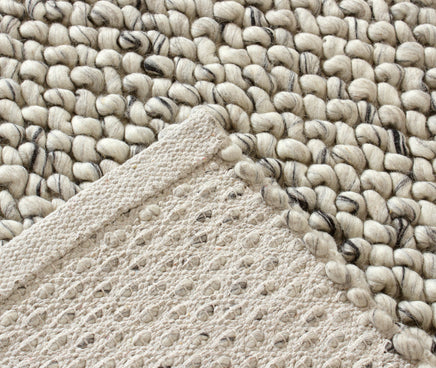 The Aurora collection is a stunning pattern of concentric diamonds that textures this rug is created by pairing up lines of chunky wool loops. The delightful bobbles show off the naturally occurring ivory and ash grey hues of the wool, while the high-low effect adds depth and fascination to the monochromatic rug. Hand-tufted by skilled craftspeople, the durable area rug stands up to high-traffic areas of the home. Eye-catching, beautiful, and soft to the underfoot are truly worth looking for in any rug. Features: Color: Ivory/ Ash Grey Material: 100% wool Luxurious Soft Finish Soft Pile This product is natural wool, and it is in its nature to shed. Country of origin: India Slight variations in colour, texture, and weave make each rug unique. Please note that there may be variations of /-5% in sizing & up to 10% for handmade items. New rugs, particularly those that include wool fibres, are susceptible to shedding. With care & treatment, most rugs should stop shedding within 2-3 months. Dimensions & Weight: 160cm x 230 cm 10 kg 240cm x 340cm 19 kg Specification: Product Type - Area Rug Material 100% Wool Construction Hand Woven Shape- Rectangular Rug Pad Needed- Yes Handmade Yes