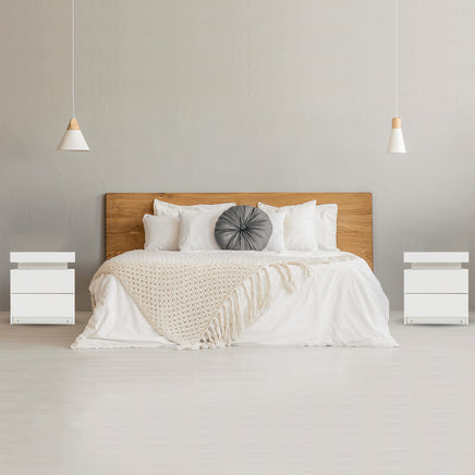 La Bella Bedside Table 2 Drawers RGB LED Bedroom Cabinet Nightstand Gloss AURORA - White