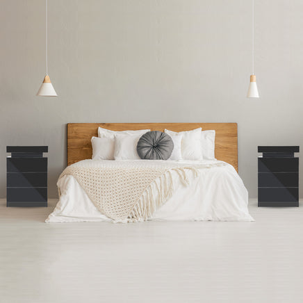 La Bella Bedside Table 3 Drawers RGB LED Bedroom Cabinet Nightstand Gloss GLORY - Black