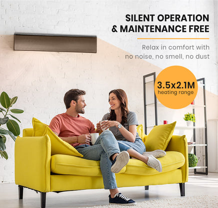 A 1800 watt electric element is embedded in the black anodised aluminium strip that rapidly produces even and gentle heat dispersion. Plus, unlike gas heaters there is no glow or glare, and no need to refuel.
