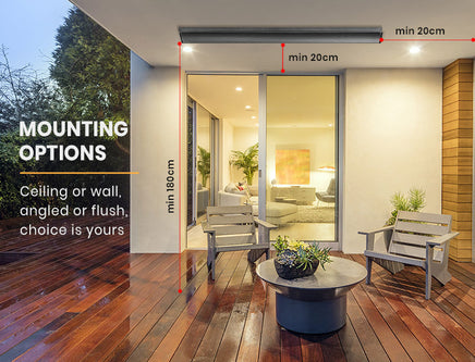 With silent operation and modern minimalist aesthetics, the ThermaStrip 18 is sure to seamlessly integrate into any outdoor living space. Simple to install swivel brackets allow for the flexibility to mount the sleek strip heater undercover on walls, ceilings or beams.