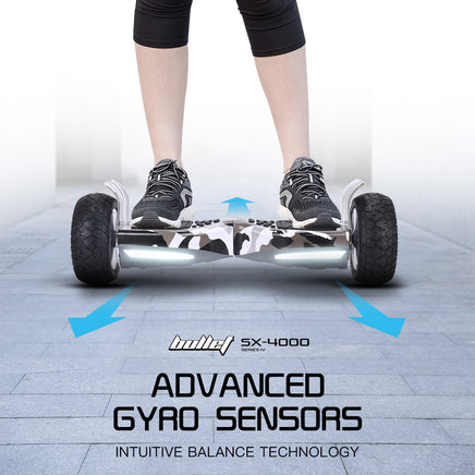 Experience a next level hoverboard with the state-of-the-art Bullet SX-4000. Its high-speed chipset reacts instantly to your bodys movements, offering highly responsive acceleration, turning, and reversing.