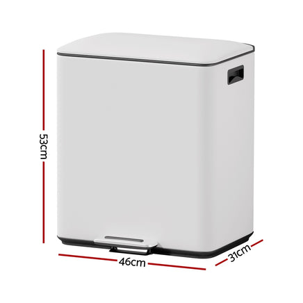 Introducing the Cefito Pedal Bin, a sleek and modern solution for your waste management needs. Crafted from sturdy carbon steel and featuring a contemporary design, this bin is built to last. Its anti-rust and waterproof properties ensure long-lasting durability, while the stainless pedal allows for easy and hygienic operation. With its soft closing mechanism, the bin provides a quiet and seamless experience. Its modern rectangular shape and dual-compartment design make it perfect for easy garbage sorting. The bins have a 15L and 25L capacity respectively, providing a total of 40L for all your waste disposal needs. Additionally, this bin is not only durable but also easy to clean, making maintenance a breeze. Upgrade your waste management system with the Cefito Pedal Bin today.