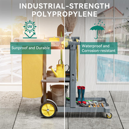 The cleaning cart is made of durable PP material, and its structure and connecting parts are carefully designed to ensure that the product is not easy to be worn out or damaged under frequent use, ensuring its long service life.