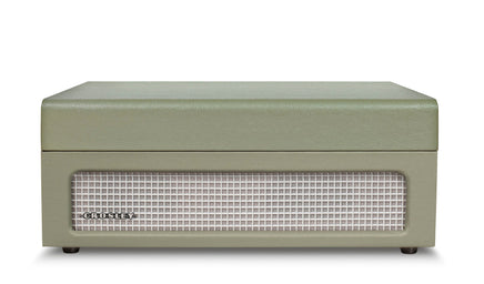 Crosley Voyager Sage - Bluetooth Portable Turntable Record Storage Crate.Join Crosley's mission to bring analogue music to the masses with the Crosley Voyager three-speed turntable. The clean, vintage-inspired aesthetic fits into any space, while the lightweight design allows this record player to travel “further than anyone, or anything in history.” Spin 33 1/3, 45, or 78 RPM records or launch the built-in Bluetooth transmitter or receiver to send your digital music wirelessly. Discover the RCA outputs on the back that allow you to easily plug into your existing solar music system or bigger speakers to add propulsion to any party. Drop the needle on a reissue of the golden record, probe the adjustable pitch control knob to dial in the speed and prepare for blast off!