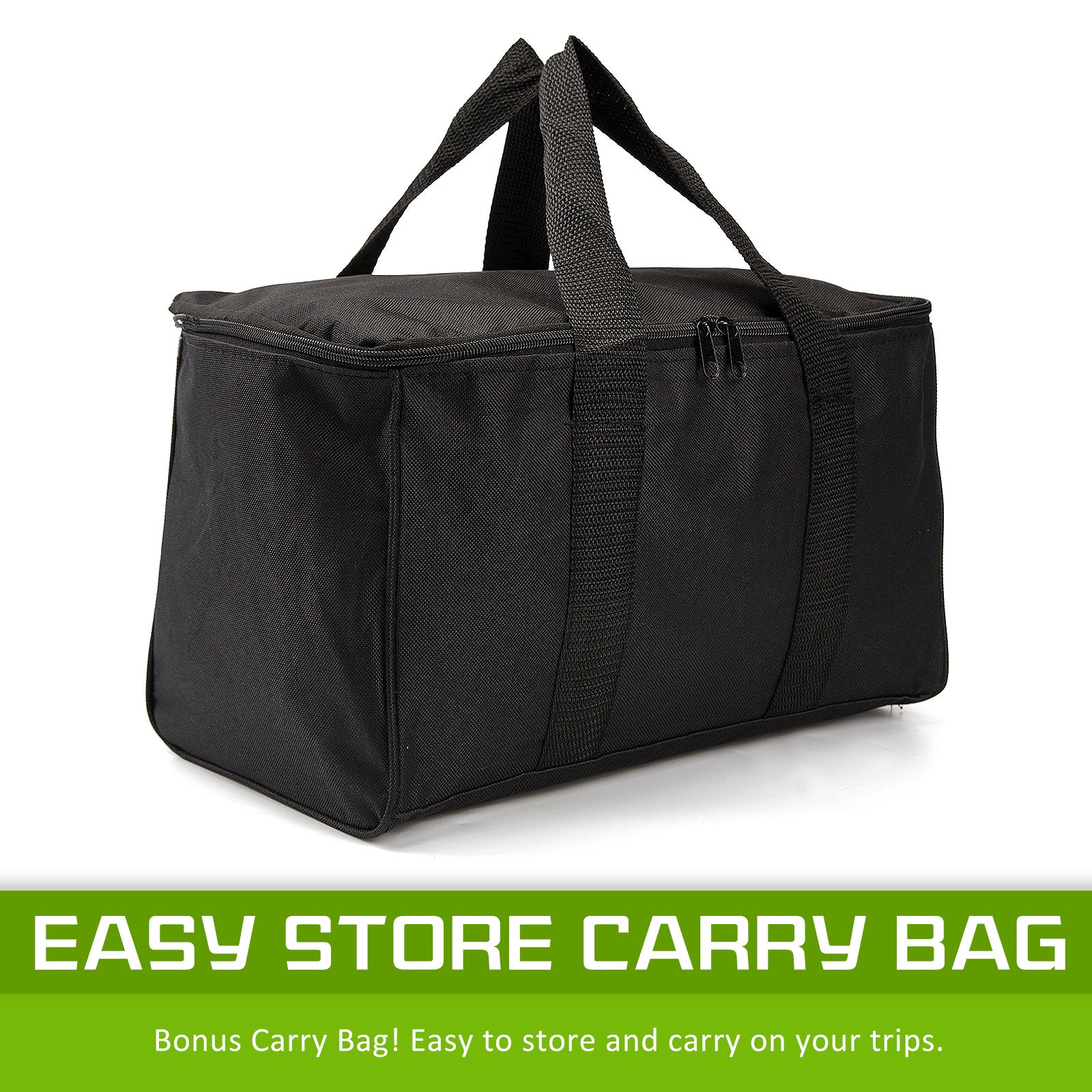 The compressor main body is made of premium quality heavy duty parts. It is equipped with twin premium stainless steel valved cylinders, lifetime bearing mounted gearless direct drive copper motor, fused overload protection, dual foam air filters, heavy duty alligator clamps and an extra safe rubber sealed power cable in good length. A bonus carry/storage case comes with the compressor so you can keep all the holes and cables tidy and take the compressor wherever you want in your vehicle!