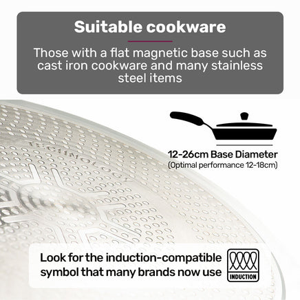 - For induction compatible cookware up to 26cm diameter (12-18cm for best performance)