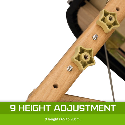 Wooden frame! its sturdy structure allows the table to support up to 300kg. Furthermor, With 9 height adjustments ranging from 63cm - 84cm, this table accommodates user of different heights.
