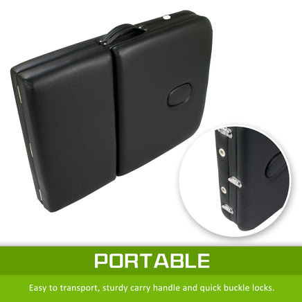 Forever Beauty Portable Massage Table Bed 3 Fold 70cm Wooden Therapy Waxing - Black