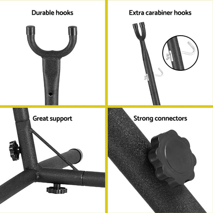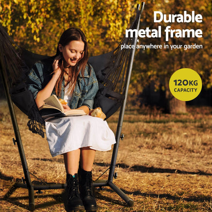 Picture yourself on a lazy Sunday, book in hand, swaying gently amidst the whispering trees. Our Gardeon Hammock Chair, comes with a sturdy metal frame, is your perfect retreat. Its soft-touch polyester-cotton blend ensures cosy comfort as you read, nap, or daydream. Combining luxury with versatility, it's the ideal spot for your moments of relaxation.