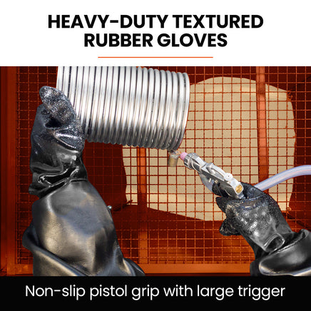 The moulded protective gloves ensure safe handling, while the internal LED light provides optimal visibility for your work. It includes 4, 5, 6, and 7mm nozzles, allowing for a wide range of blasting medium choices. Plus, with an operating pressure of 40 - 80 PSI with a minimum of 5 CFM, you can adjust the blasting strength to suit your needs.