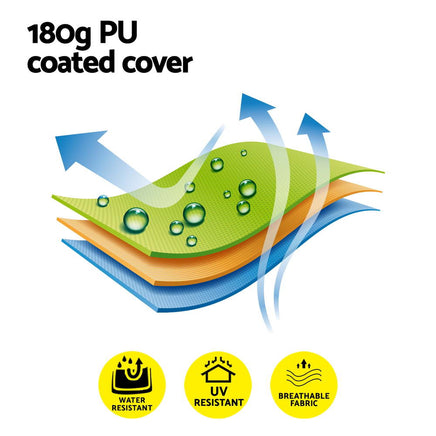 Enhance your outdoor cooking with our Instahut Grill Gazebo, featuring a powder-coated steel frame and durable PU coated polyester fabric. UV and water-resistant, it boasts an extra strong crossbar, sturdy legs, quick attachments, and is perfect for grilling and BBQs.