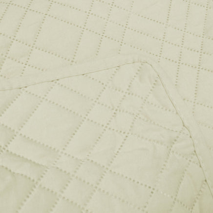 Upgrade your sleep haven with the Morris Light Cream Ultrasonic Embossed Lightly Quilted Reversible Coverlet Set by Jane Barrington. This set features ultrasonic embossed design that not only adds a contemporary touch to your bedroom but also offers a tactile delight. The rich light cream hue serves as a versatile backdrop, complementing any decor style while providing a statement of sophistication. Made from microfiber fabric and microfiber filling, this coverlet is cozy, perfect for any season. Whether it's the main attraction or a subtle addition, this coverlet set is sure to enhance the look and feel of your sleeping space.