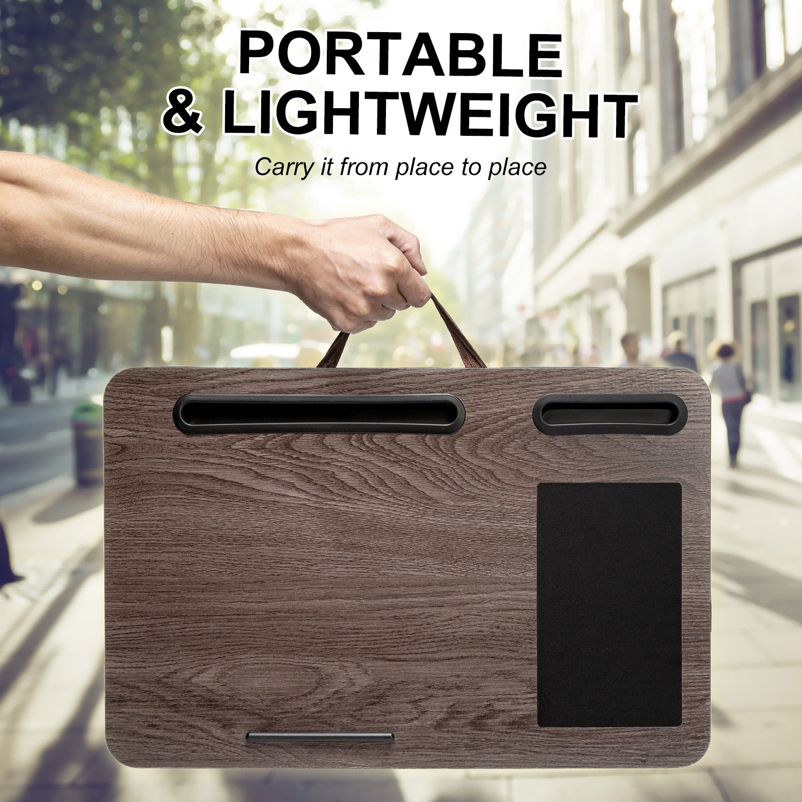 Kandoka Lap Desk Laptop Stand Phone Tablet Holder Mousepad Cushioned Lapdesk - Iron Grey Oak
