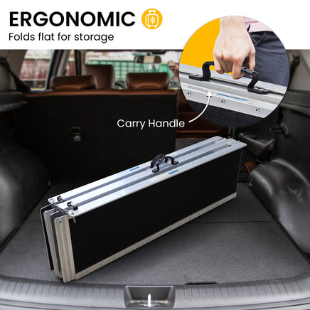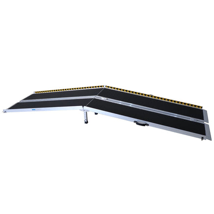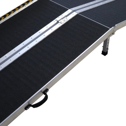 Unfold the path to accessibility with the Kartrite 10ft Aluminium Wheelchair Ramp. This portable ramp is a game-changer, offering strength, stability and safety for wheelchair, rollator and mobility scooter users. With a loading capacity of 275kg and a foldable design, its a versatile solution for various settings, from accessing steps and platforms to entering a vehicle. Whats more, the raised guard rails, anti-slip surface and lock pin mechanism ensure a secure journey every time. Upgrade your mobility with this sturdy and reliable wheelchair ramp.