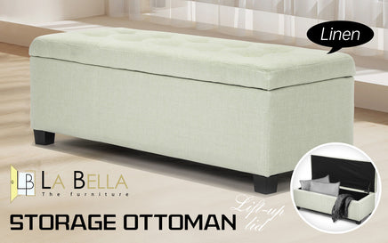 La Bella Storage Ottoman Foot Stool 102cm Fabric Blanket Box Chest Toy - Light Green