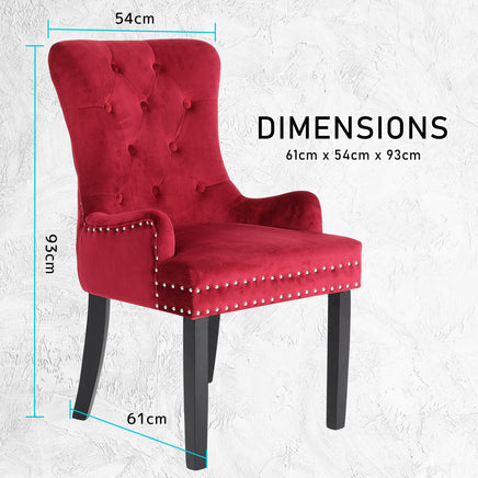 La Bella 2 Set French Provincial Dining Chair Ring Studded Lisse Velvet Rubberwood - Bordeaux Red