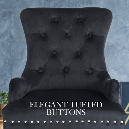 La Bella 4 Set French Provincial Dining Chair Ring Studded Lisse Velvet Rubberwood - Black