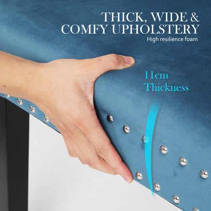 With thick padded with 11cm high resilience foam and wider than the normal cushioned seat. All these features will no doubt give top maximum comfort. Elegant upholstered, together with silver studding embellished by hand on edges add highlights to the chair.