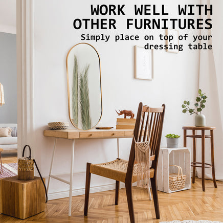 The oval mirror is stylish and neat in design and comes with a 2.8cm thickness slender aluminium frame that is sure to capture the attention of all. Plus, its curved lines all around will become a central focal point in any room which makes spaces feel more inviting and relaxing.