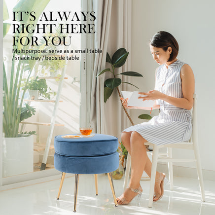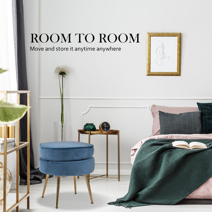 Ottoman Foot Stool Velvet Fabric Metal Leg Round NAVY BLUE SALE
