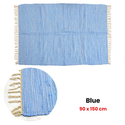 Are you looking for a unique and stylish way to add a touch of texture and warmth to your home? Check out our Large Chindi Cotton Handmade Floor Mat with Tassels 90 x 150 cm! This floor mat is perfect for adding a splash of colour and comfort to any room. It features woven design with a playful tassels on each end that add a bit of fun and flair to the design. Tassels are uneven length. Made from 100% cotton, each mat is carefully handmade, giving it a unique and authentic feel.