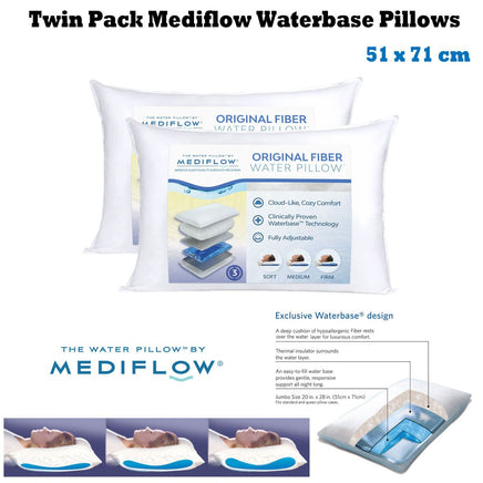 This is the pillow that proved it takes comfort plus support for the best night's sleep. That's why every Mediflow pillow has 2 layers - on the bottom our proprietary adjustable waterbase that provides responsive support for the neck - on top a soft, plump layer of cloud-like Dacron fiberfill polyester providing exceptional comfort for the head. Traditional single layer pillows can only provide comfort or support depending on the filling but never both. What's more, you can even customize the waterbase when you add water to achieve as much support as you desire!