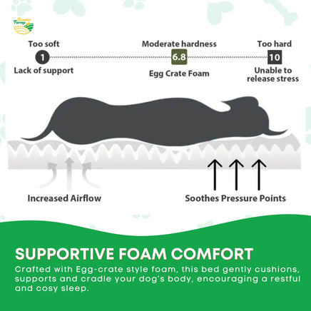 Supportive Foam Comfort – Egg-crate style foam gently cushions your dog’s body for enhanced relaxation and a cozy rest.