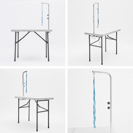 The board is made of high-quality easy to clean vinyl textured surface which is also scratch and slip-proof so it is safe for your pet as they are able to stand stably. The edges of the table are rounded for safety in case you or small children hit the corner of the table. The table comes with a height-adjustable rod and loop where you can secure your pet so it can stay in a comfortable position while you work on it. The table frame is made of high-quality iron and the legs come with anti-slip rubber in order to add stability to the table.