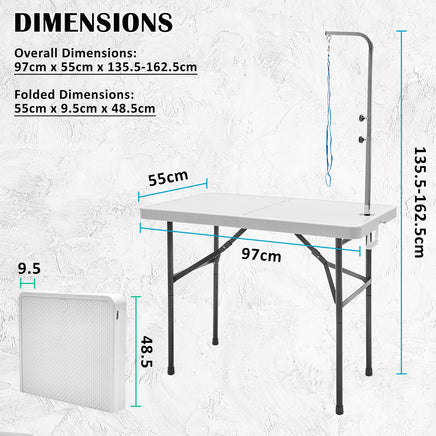 Paw Mate Dog Cat Pet Grooming Salon Table 97cm Adjustable Foldable Mobile Dog Cat for Commercial - White