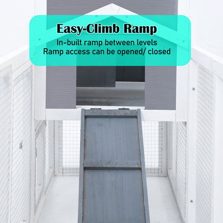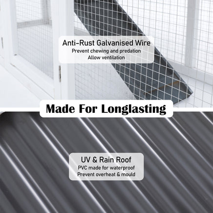 With our Paw Mate GRACIE pet hutch, you can provide your pets with plenty of space to run and play, ensuring their protection and your peace of mind. Made from polycarbonate and galvanised mesh wire, this hutch is durable, predator-proof, and insect resistant. Its spacious double-level enclosure allows for sufficient open ground floor space for grazing and exercise while hopping up and down the ramp can strengthen your pets' muscles.