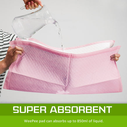 The pad is made of high-quality soft non-woven fabric with 7 layers of protection so it absorbs high quantity of liquid. We tested and it can hold up to 850ml of liquid without leaking. The pad is treated with antibacterial protection so you can have a peace of mind that your beloved pet is protected. Together with the super absorbent pad, the high-quality leak-proof and tear resistant plastic liner and borders ensure that no liquid is leaked outside of the pad. This is very important as you do not want to do extra cleaning as well as your dog to be confused as to where it should do their toilet necessities.
