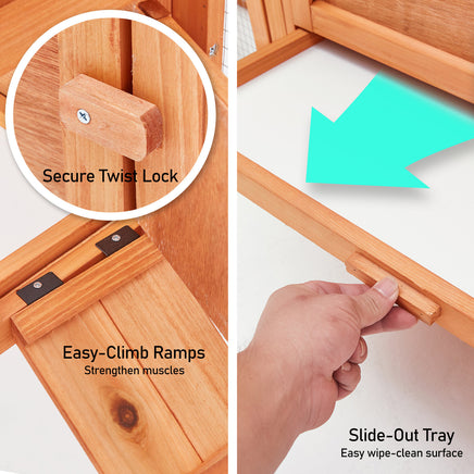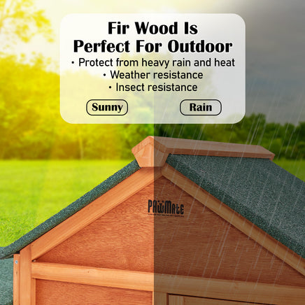 With our Paw Mate MANSION pet hutch, you have a piece of mind as it gives them protection and plenty of space to run. As constructed from non-toxic fir wood and galvanised mesh wire, it ensures durability, predator-proof, and insect resistance. This spacious and double-level enclosure allows sufficient open ground floor for grazing and exercise, given that hopping up and down the ramp can strengthen your pets' muscles.