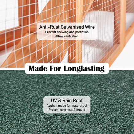 If they are living outdoors, it is important to keep them cool on hot days as they are prone to heat stress which can be fatal. Not to mention, our hutch features a well-insulated and weatherproof green asphalt roof that can withstand heat, rain, and wintry weather.