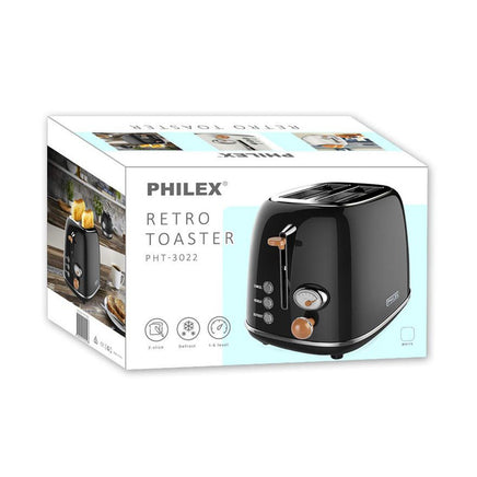 PHILEX 2-Slice Toaster Bread Reheat Retro -Black