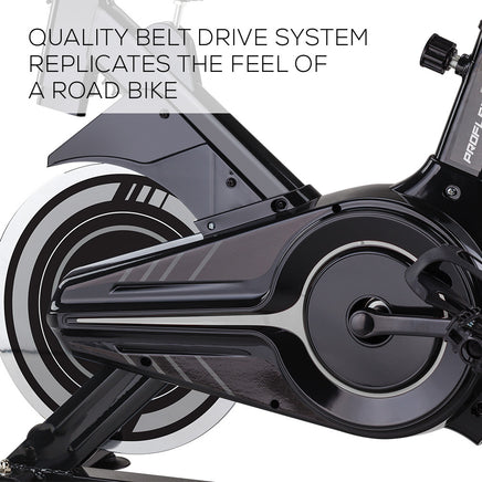 Comfort is essential to get the prolonged use out of fitness equipment that will see you reach your goals. For this reason, PROFLEX has prioritised ergonomics and comfort as core attributes for the SPN700. The seat, seatpost and handlebar are all adjustable to suit a range of users (check specifications before purchase). It features an extra-thick padded seat and secure gripped pedals with toe straps that provide an authentic feel and fluid pedal motion. Even its belt drive system acts to replicate the natural sensation of an on-road bicycle. All these inputs work in harmony to provide a best-of-breed spin bike that can be used all year long in any room of the house, meaning fitness goals can actually be reached, and then exceeded.