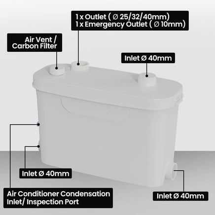 This pump can be conveniently fitted next to a shower tray, under a sink or beside a tub making it the ideal choice to overcome gravity drainage issues. It enables you to have basement showers and install new drains in any location without major plumbing work.