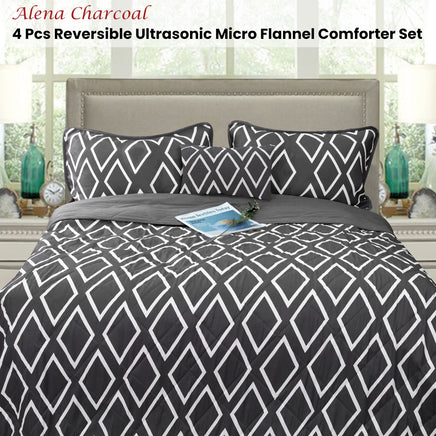 Bring a new touch to your bedroom decor with this Alena Charcoal 4 Pcs Reversible Ultrasonic Micro Flannel Comforter Set by Ramesses. Made from soft, durable, and shrinkage-free microfiber yarns in charcoal and white hues. Serve yourself with better sleep every single night and wake up each morning with this Premium Hotel Collection Comforter Set. Premium design with high quality craftsmanship ensures the added comfort and super soft feel giving you the best sleep experience.