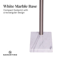 Elevate your home decor with this modern chic lighting fixture. The unique, rectangular white marble base makes this floor lamp stable and stylish.