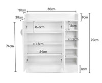 It's constructed with adjustable shelves in two door cupboard and side storage shelves that can store up to 21 pairs of shoes. Space for your knick knacks? No problem. Just convert the sides to your desire level. Great for organising your favourites, just perfect for your storage needs!