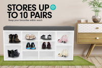 With the capacity to store up to 10 pair of shoes, the MDF material Shoe Cabinet is also a convenient cushioned bench for you to sit and wear or remove your shoes with ease. It also adds a modern touch to your hallway decor while keeping it neat and clutter-free.