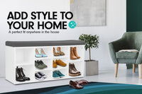 Eliminate the appearance of clutter and create a neat, organized space with this shoe cabinet with padded bench.