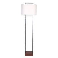 This mid-century modern lighting fixture has a block wood base in cherry finish and double poles for an industrial style design inspired by vintage Hollywood dcor. Luxurious and versatile, this chic lamp will complement your living room, bedroom or workspace.